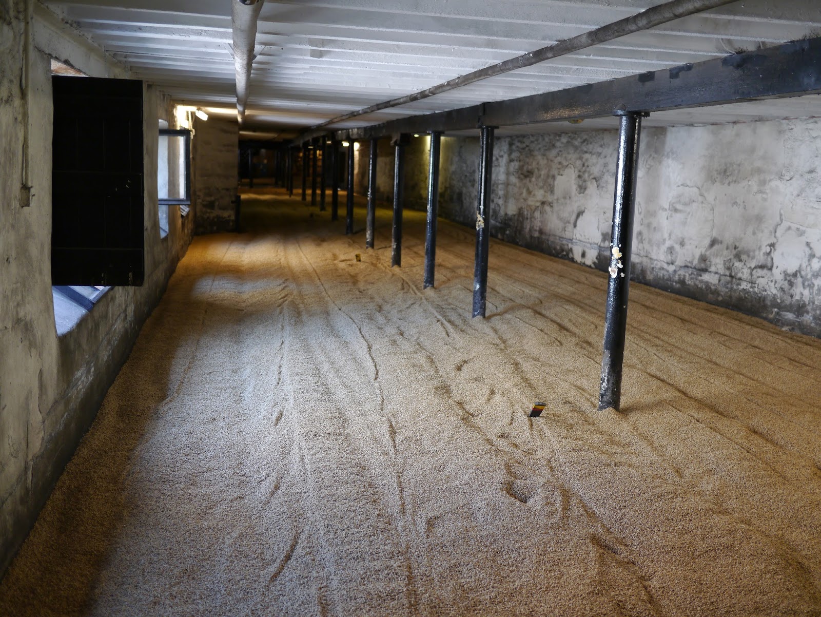 Highland Park is one of six distilleries that do some of their own malting, and their floor was quite long and very narrow compared to the other three that we saw. It looked like an old bowling lane only for people who were able to get considerable velocity on their rolls (of their bowling balls). She told us that often the malt is still turned by hand using the traditional shovels, but that when the crew was running late, they would resort to using variations on the machines we saw at Bowmore. When we noted that if it was our job, we’d somehow always be running late, she said the time difference wasn’t as large as we might think: something like two hours to turn it by hand versus an hour and a quarter with the machine.