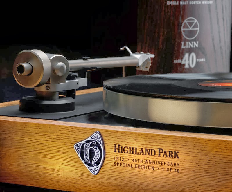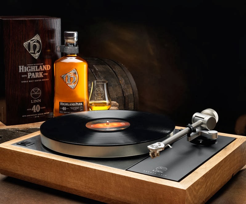 It’s probably worth noting that the Highland Park Linn 40 year old special edition costs £25,000; that is,about $40,000. That puts it a wee bit out of my price range, but I gather that they’ll throw in a Linn Sondek LP12 turntable, which is purported to be an outstanding channeler of good vibrations. (Scroll down for a photograph of the whisky/turntable combo.)